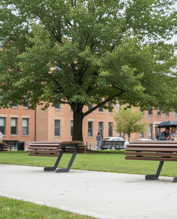 Tavoli e sedie per spazi pubblici: arredo outdoor resistente e confortevole, ideale per parchi e aree relax.
