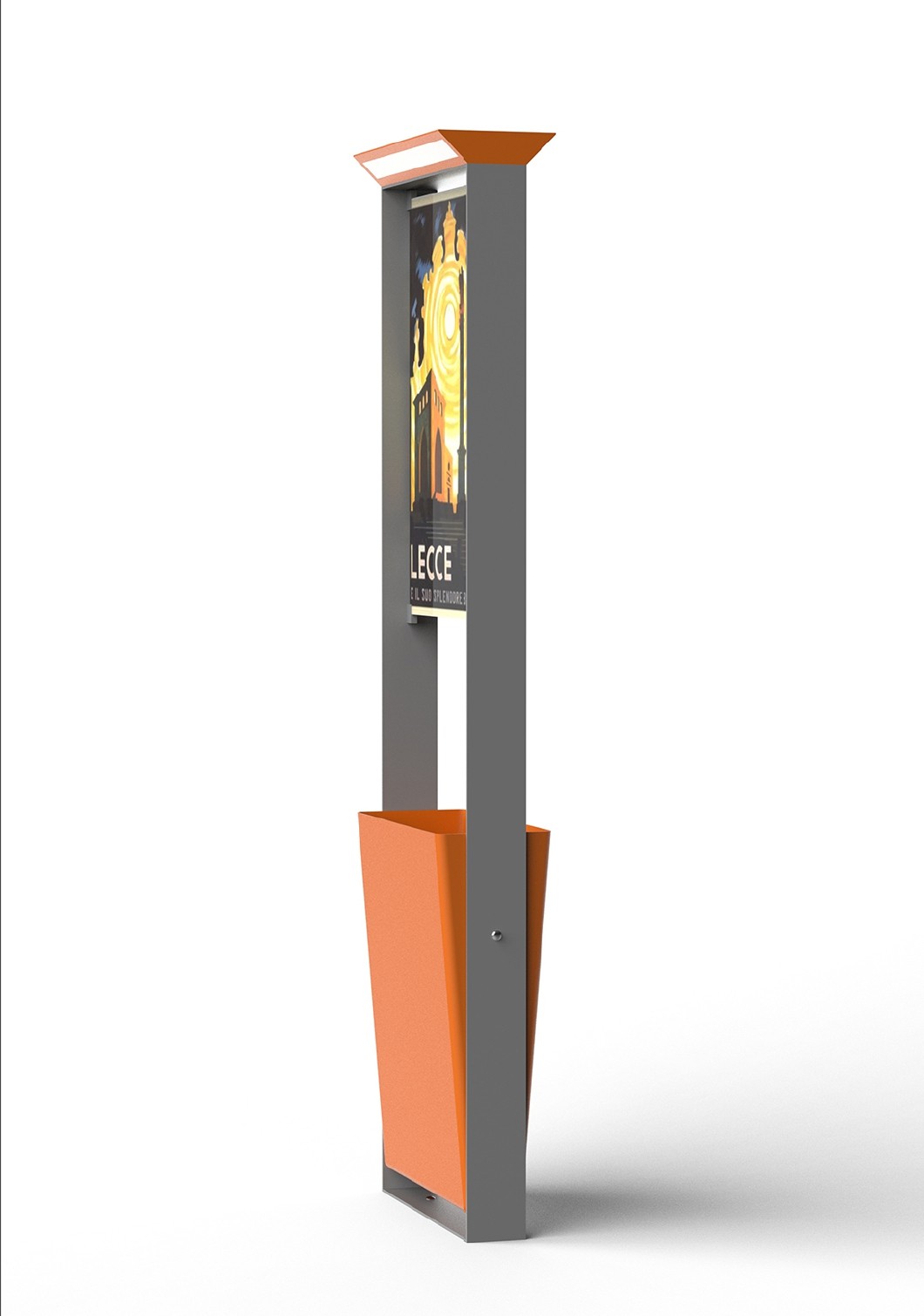 – struttura in acciaio zincato e verniciato disponibile in colore bianco puro RAL 9010, giallo segnale RAL 1003, rosso fuoco RAL 3000, telemagenta RAL 4010, blu cielo RAL 5010, verde giallastro RAL 6018, grigio tele RAL 7046, grigio antracite RAL 7016, alluminio brillante RAL 9006,effetto corten, silver Bugnato, Rame Bugnato .