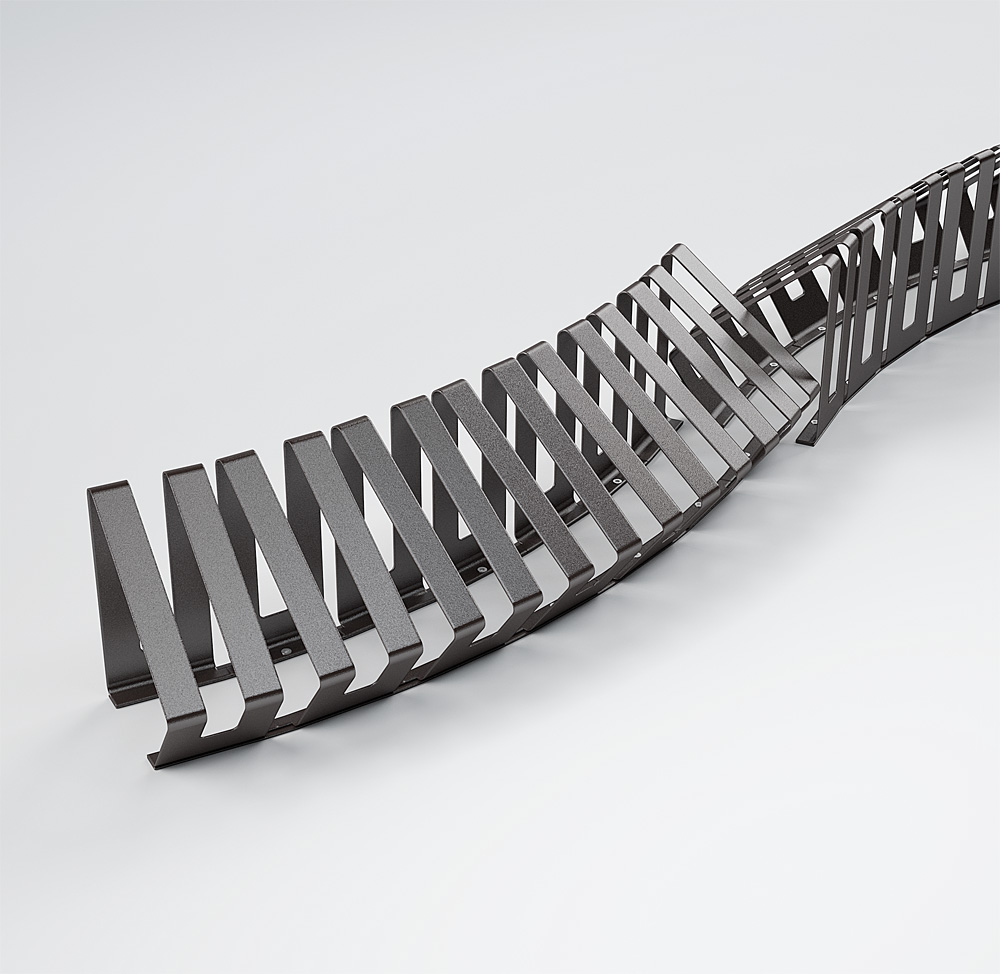 • 6 moduli in acciaio, tagliati al laser, pressopiegati e saldati tra di loro.