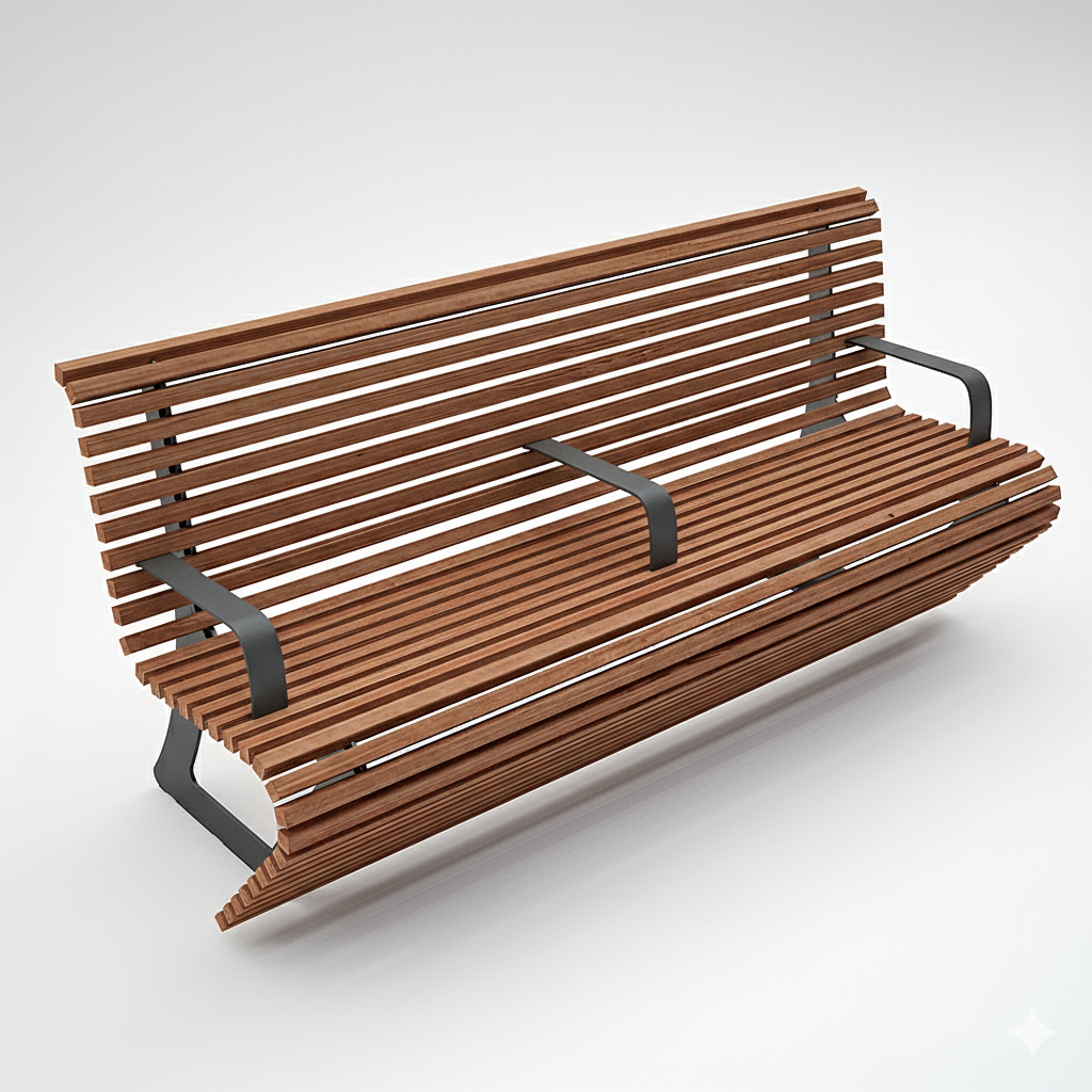 La panchina ELODIE è concepita per arredare con eleganza gli spazi pubblici, combinando robustezza e sostenibilità ambientale: