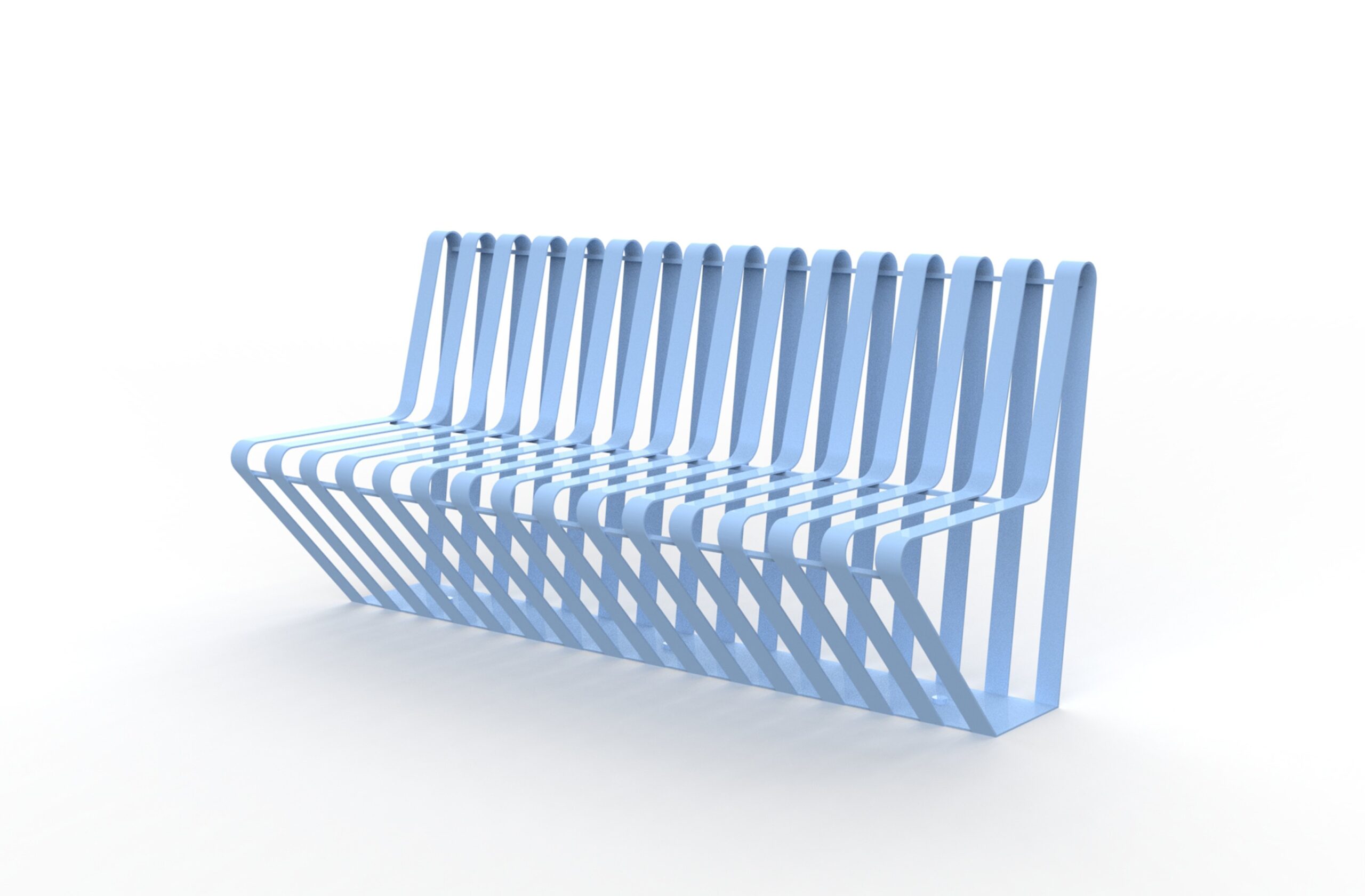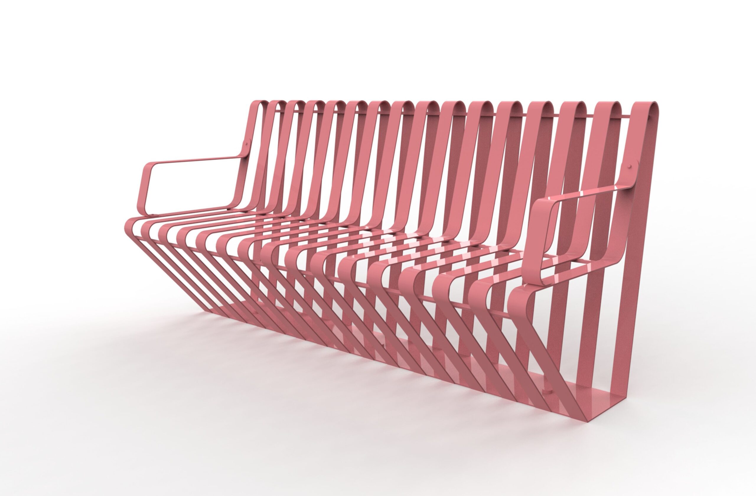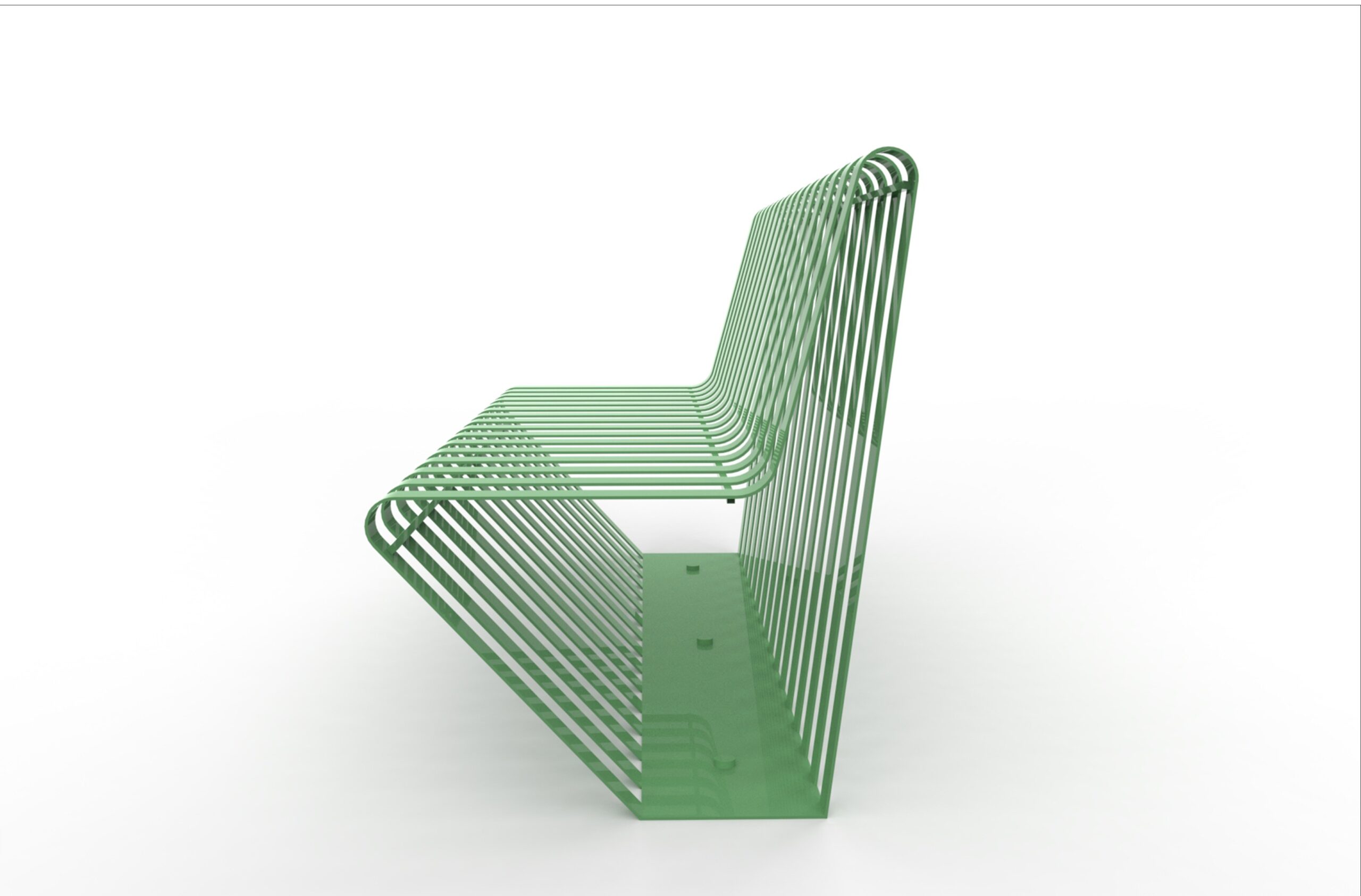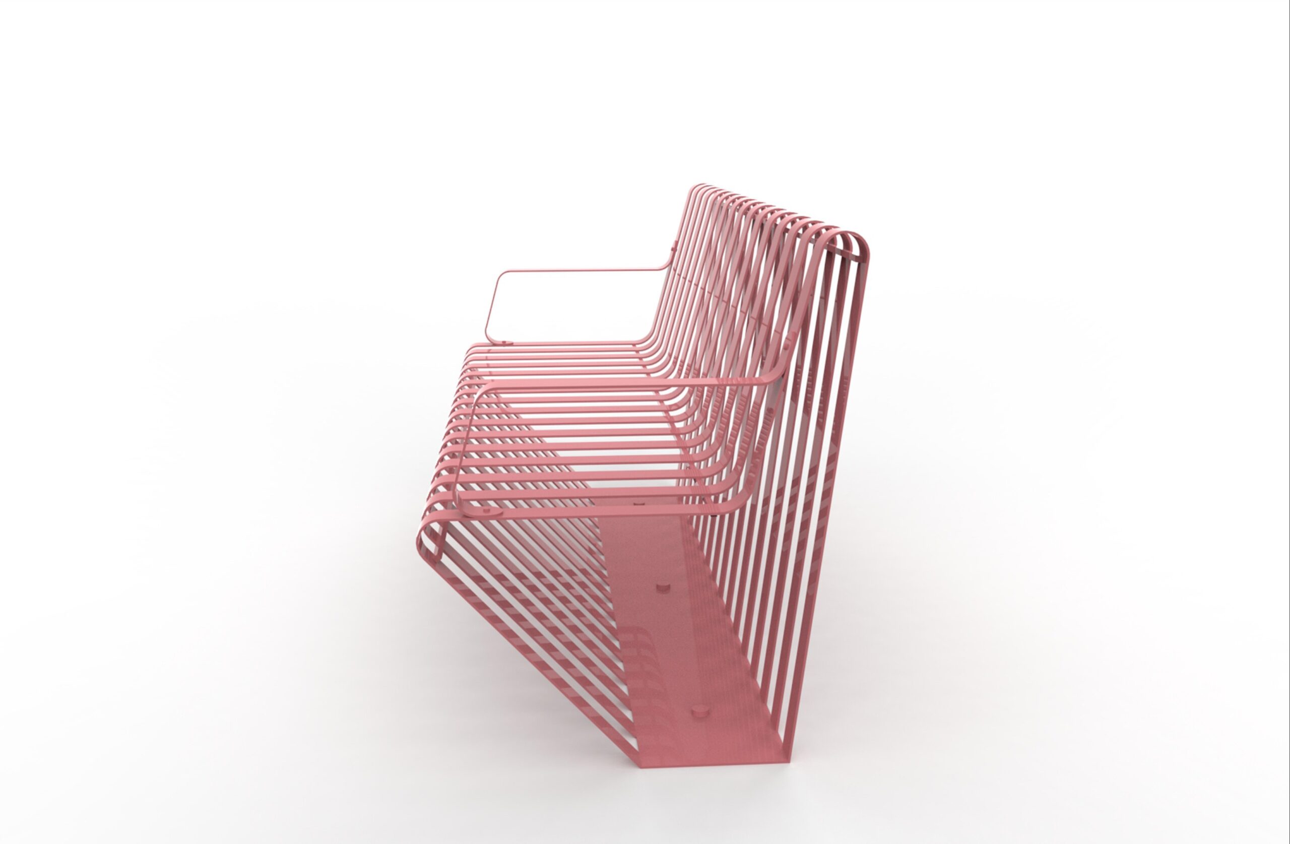 A single, press-folded and calendered steel structure, laser-cut, galvanised and painted; on the base there are 4 holes 14 mm in diameter for ground fixing, with backrest, OPTIONAL WOODEN ARM BRACKET INSERT.