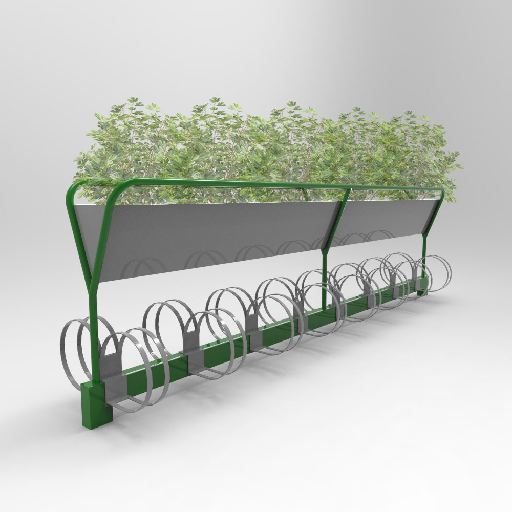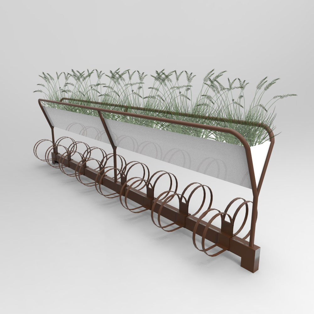 – laser-cut front plate welded to the round tube, possibility of displaying advertising posters, housing for planters