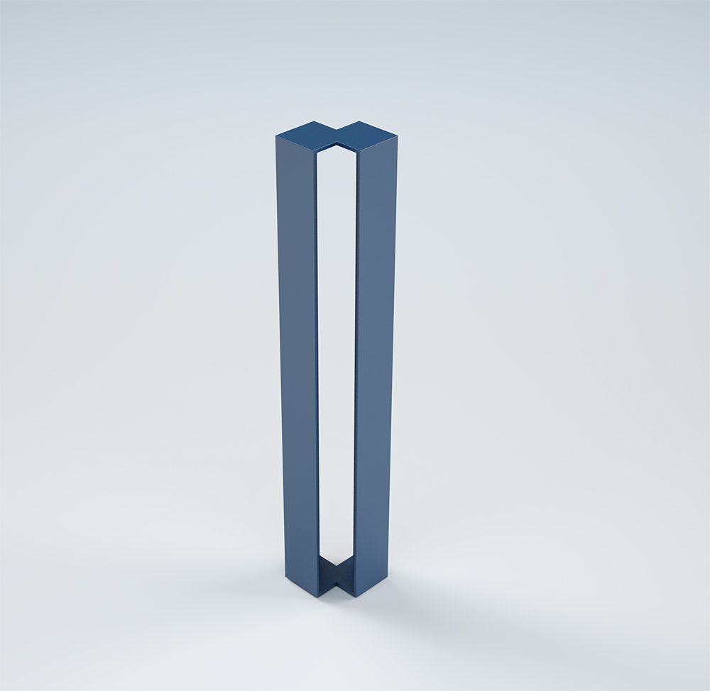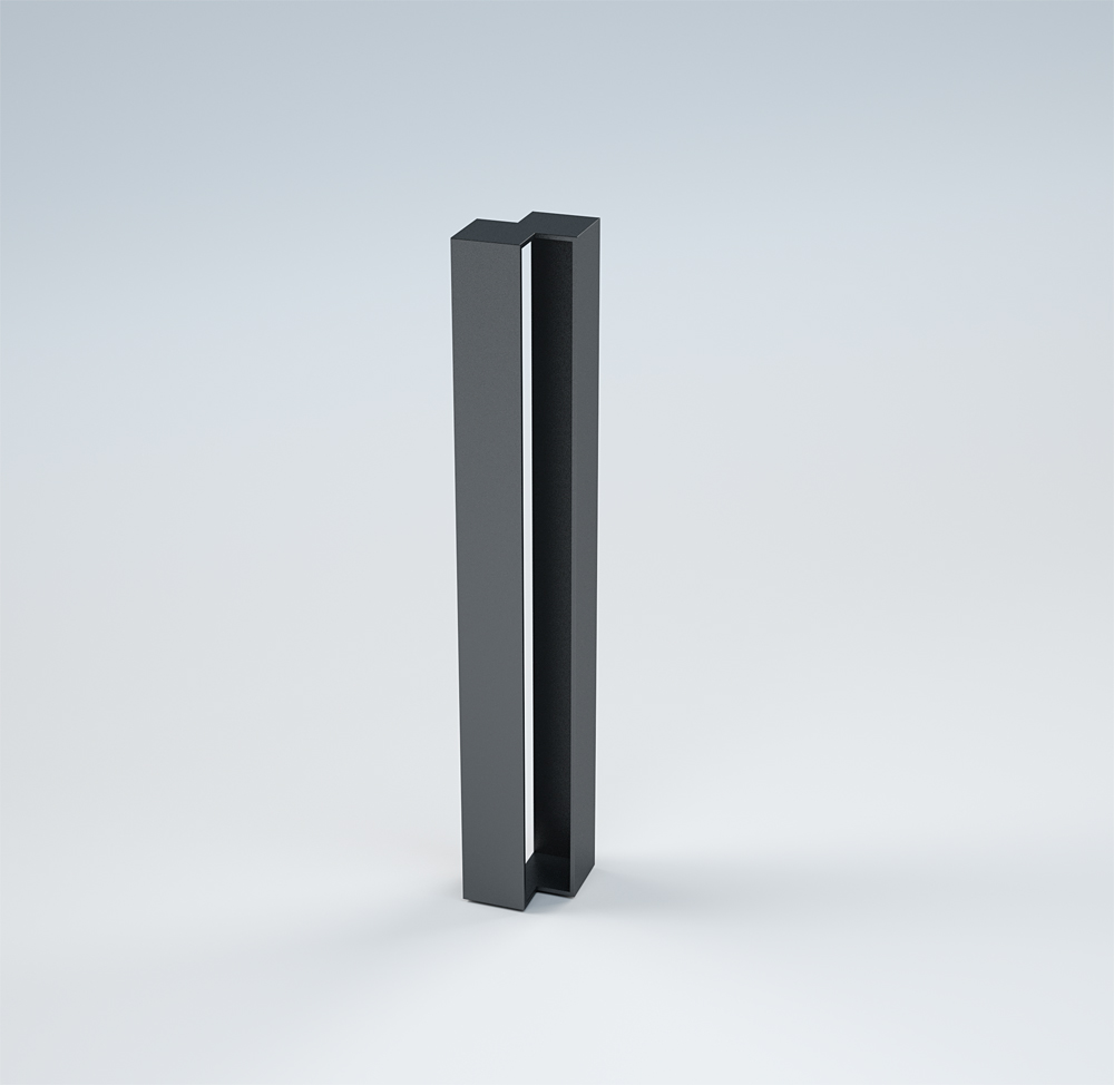 • Piastra di base e di sommità in acciaio, sagomata al laser e munita di 2 fori del diametro di mm 14 per il fissaggio a terra.