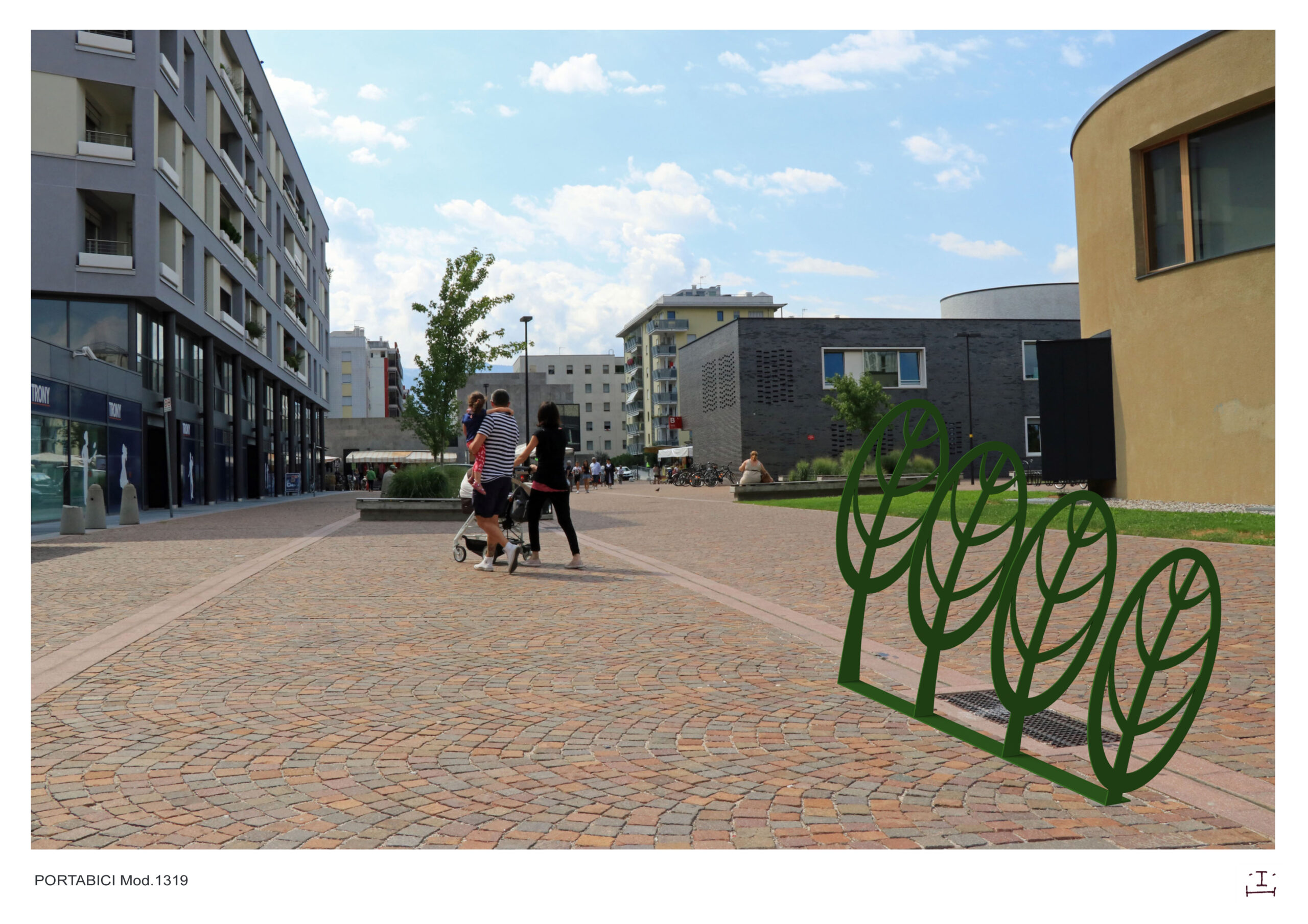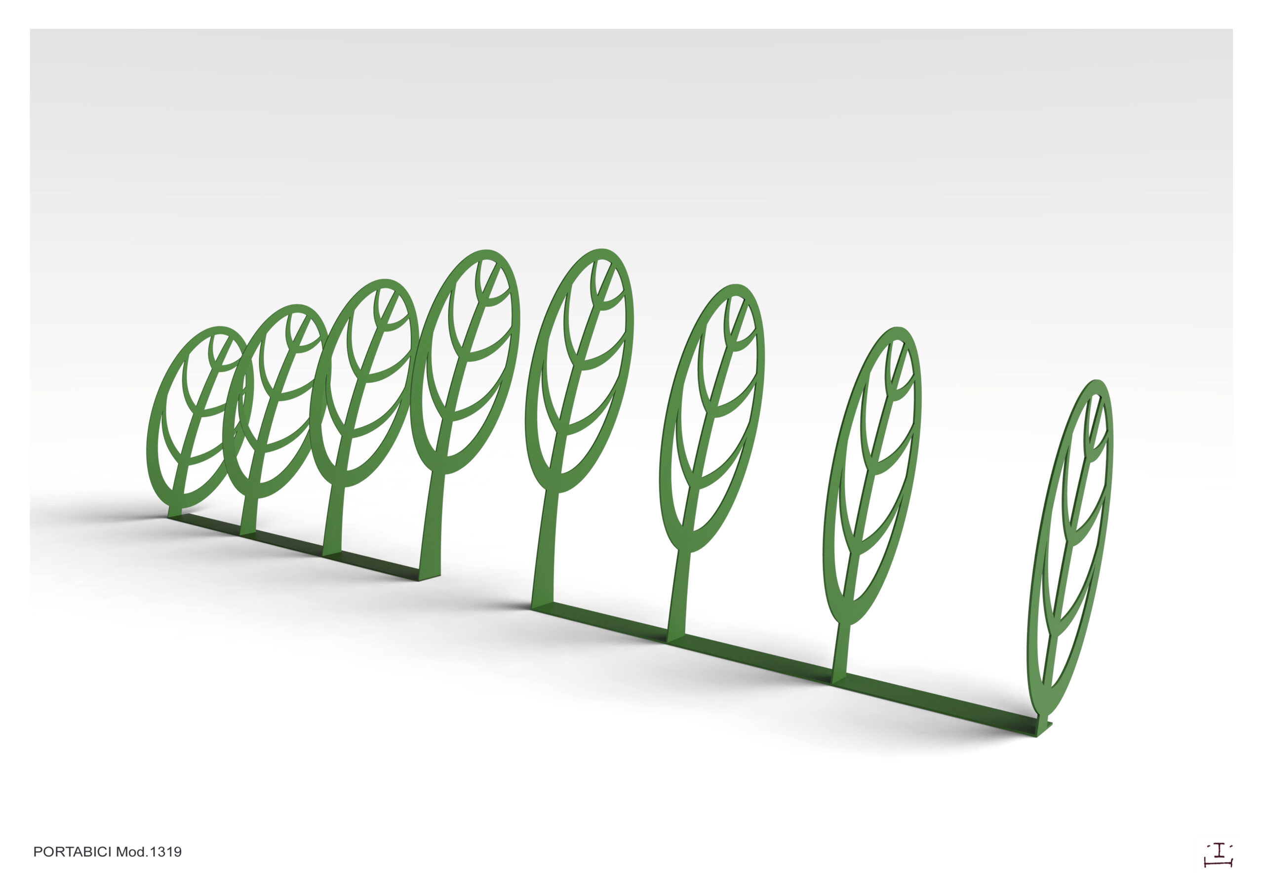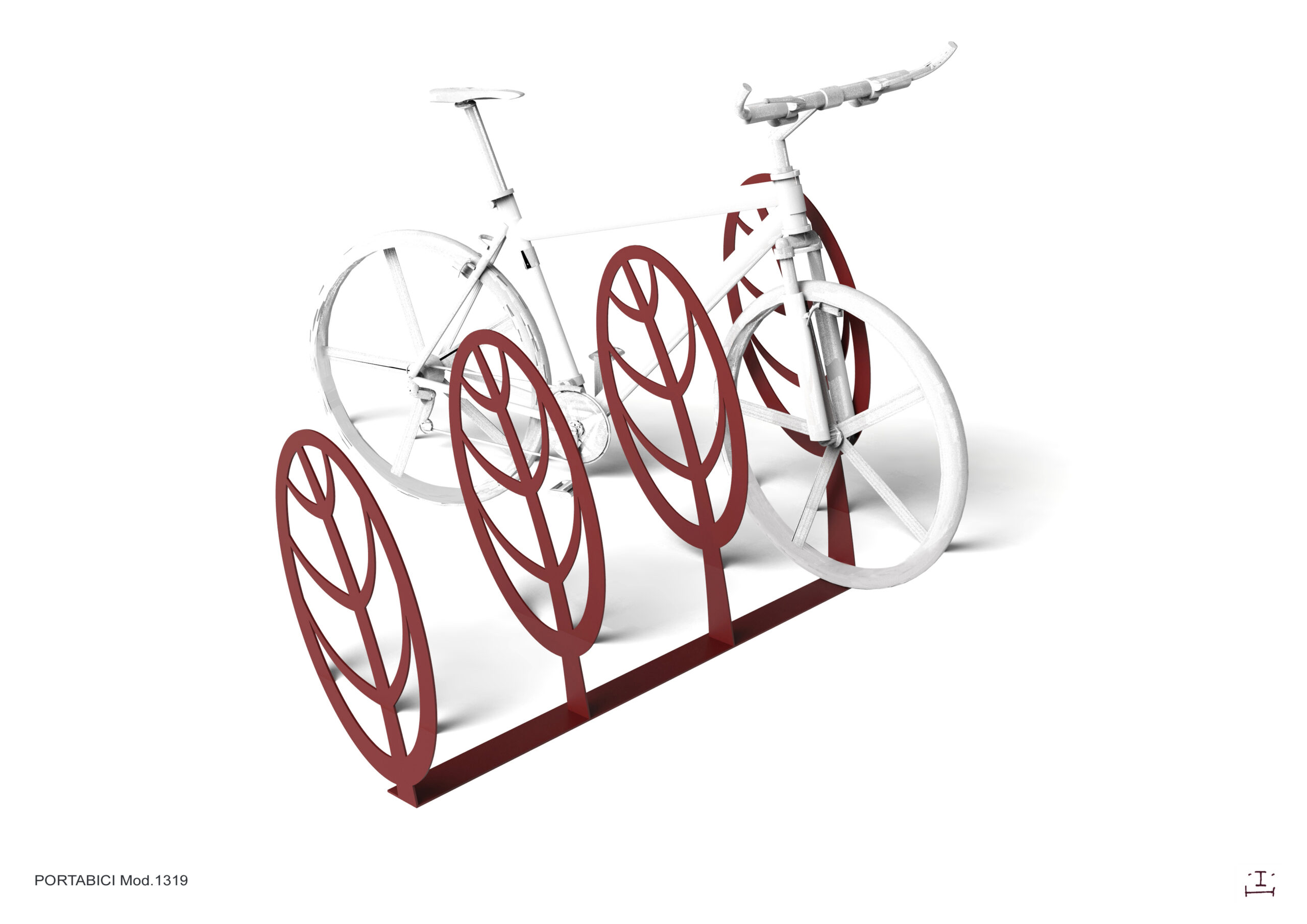 NATURA è un portabiciclette realizzato secondo forme naturali ed organiche; un’unica lamina in acciaio dalla forma di foglia che accoglie le ruote delle biciclette permettendo un ancoraggio in sicurezza, grazie al design dei fori realizzati mediante taglio laser che richiamano le naturali nervature delle foglie.