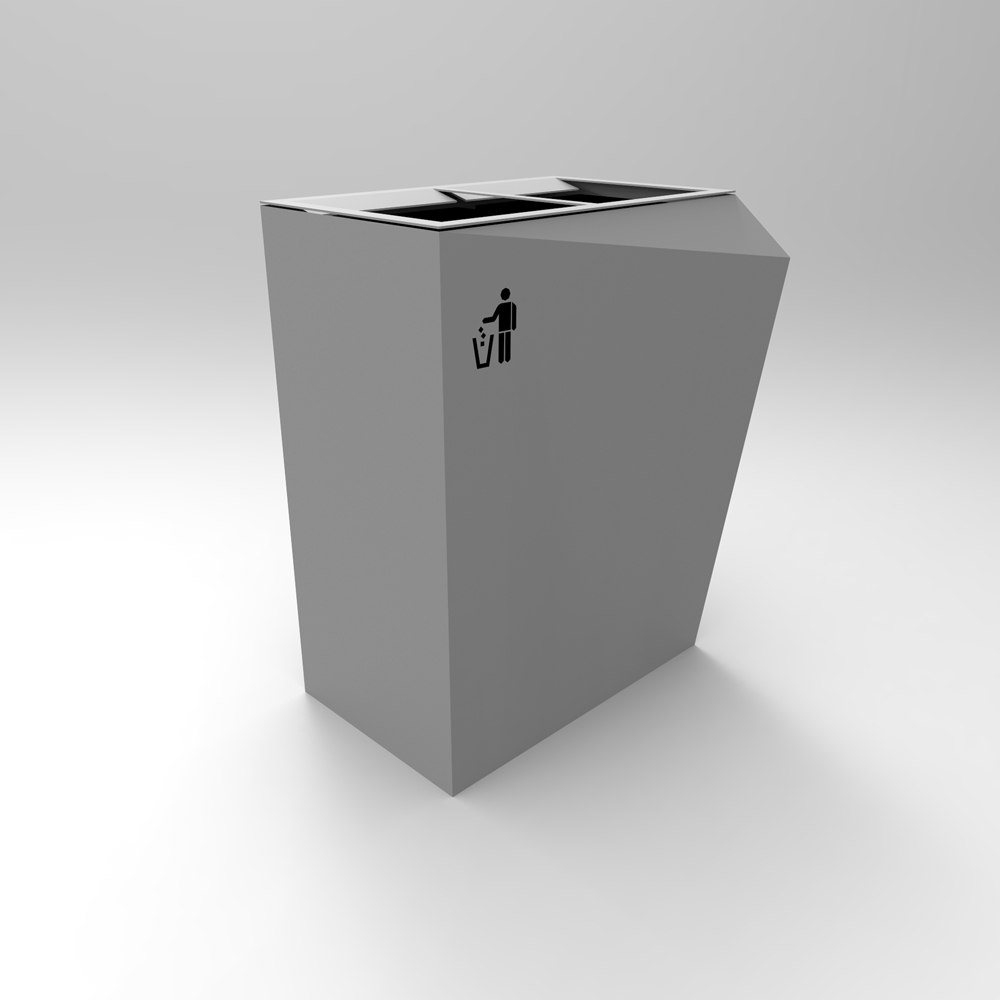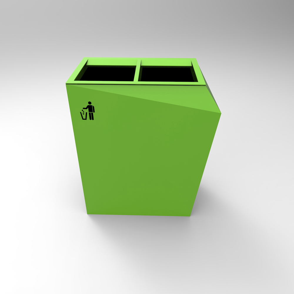 • Coperchio in lamiera tagliata al laser zincata e verniciata sul quale sono presenti 2 aperture per alloggio rifiuti e scritte segna rifiuto.